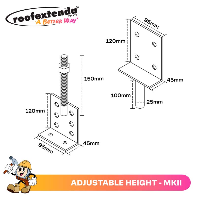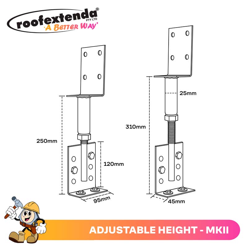 Local Council or Shire approval may be required prior to construction. Engineer’s computations related to Roof Extenda Brackets are available on the website. Roof Extenda accepts no responsibility for the type of construction undertaken. If located in a highly corrosive area, Roof Extenda recommends 316 Marine Grade Stainless Steel Brackets.
