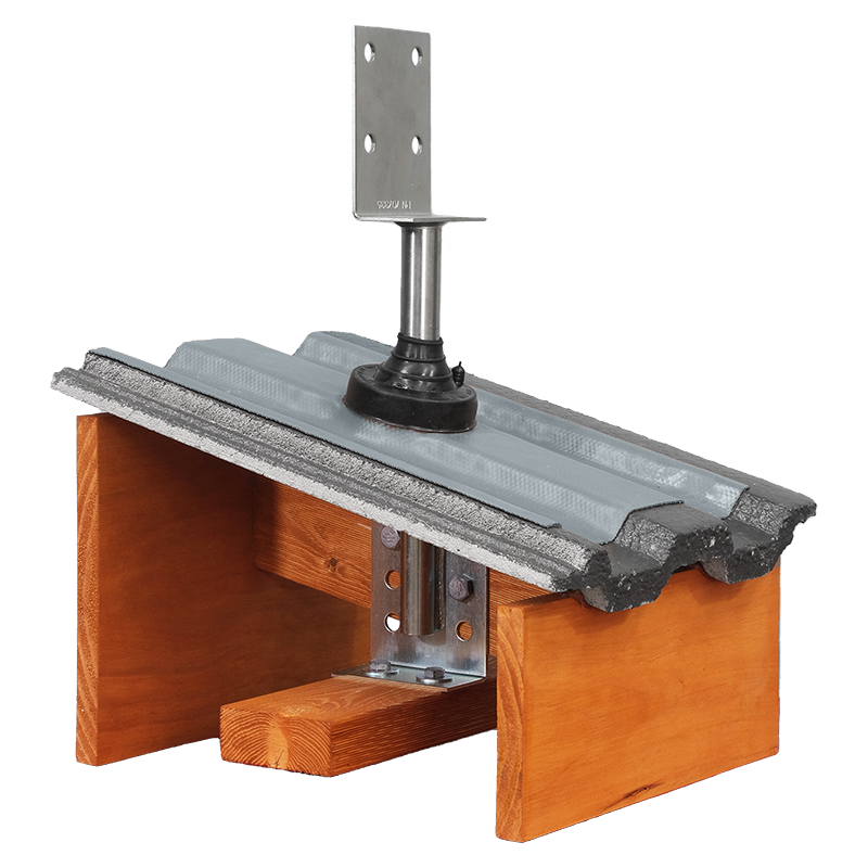 - Replace roof tiles, cutting a hole to allow the threaded rod to penetrate the roof.